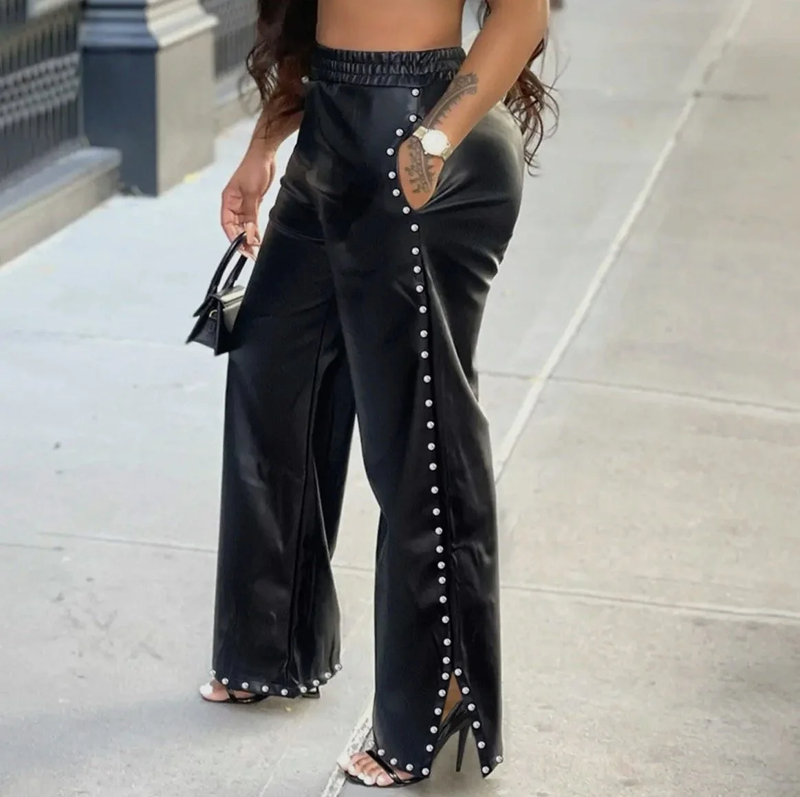 The buttery-soft faux leather finish gives you that rich look without sacrificing comfort, while the flowy baggy cut keeps it versatile for day-to-night styling. Pair them with strappy heels and a crop top for a night out, or keep it casual with sneakers and an oversized tee for everyday glam.